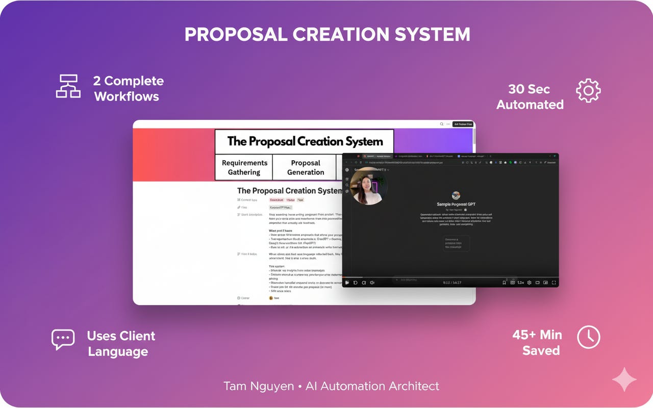 When clients see their own language reflected back in proposals, they actually feel heard. That’s what closes deals. This system saves 45+ minutes per proposal while making them more effective.