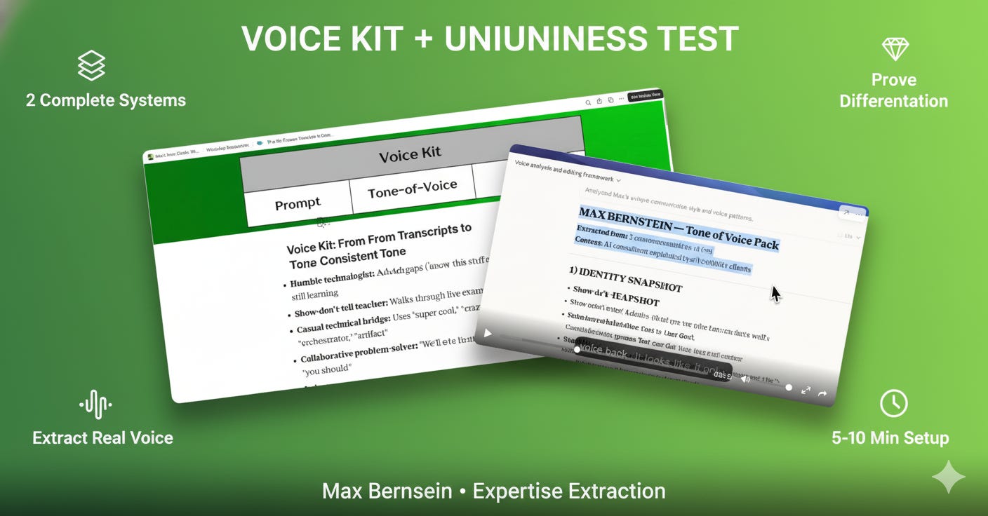 The Uniqueness Test: A comprehensive framework that analyzes your transcripts to surface your invisible expertise and conditional patterns