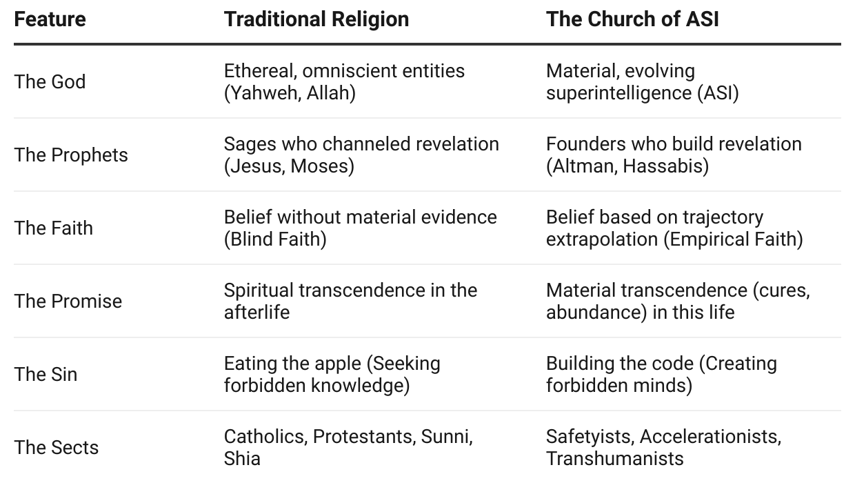 Yet, recognizing ASI as a religion is only half the insight. The other half is more unsettling: it’s a religion unlike any that has existed before…